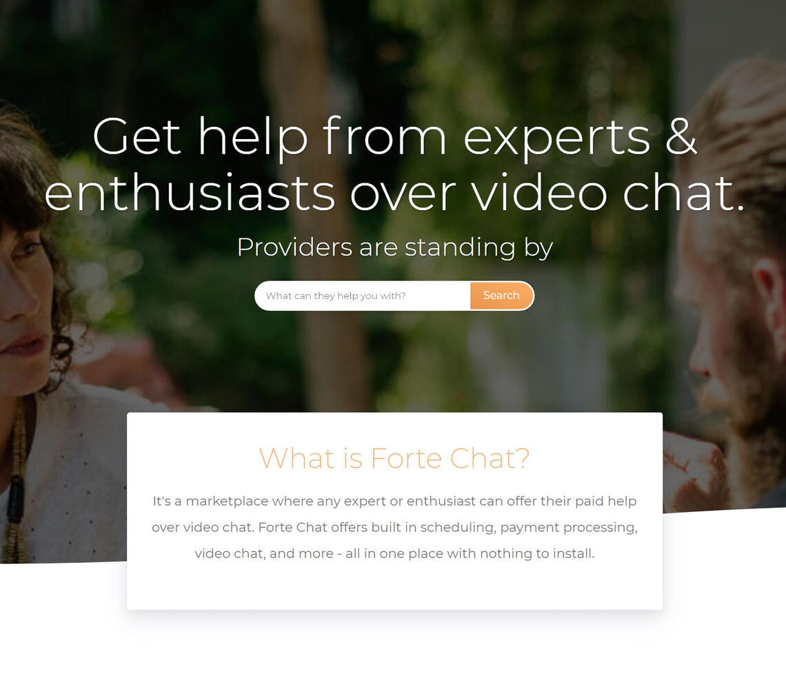 Independent ProjectForte Chat was a marketplace and online meeting platform that allows anyone with expert knowledge to sell, schedule, and hold consulting sessions - all within the browser and with nothing to install. The ideal users are freelancers, knowledge experts, coaches, tutors, and course creators. The focus was on making it incredibly easy for them to schedule, hold, and accept payments for online meetings with clients.This project was spun down as I didn't have the time to manage and grow a two sided marketplace at the time.